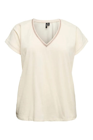 Γυναικεία μπλούζα κοντομάνικη VMCBALOLA C/S V-NECK TOP JRS BTQ CURVE Vero Moda 10326435 Birch SS25