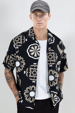 Ανδρικό πουκάμισο κοντομάνικο JCOINFINITY AOP RESORT SHIRT SS 12276854 Jack & Jones Black SS25