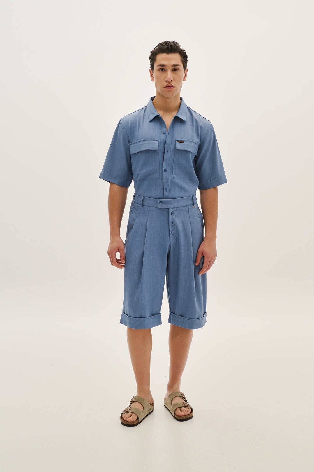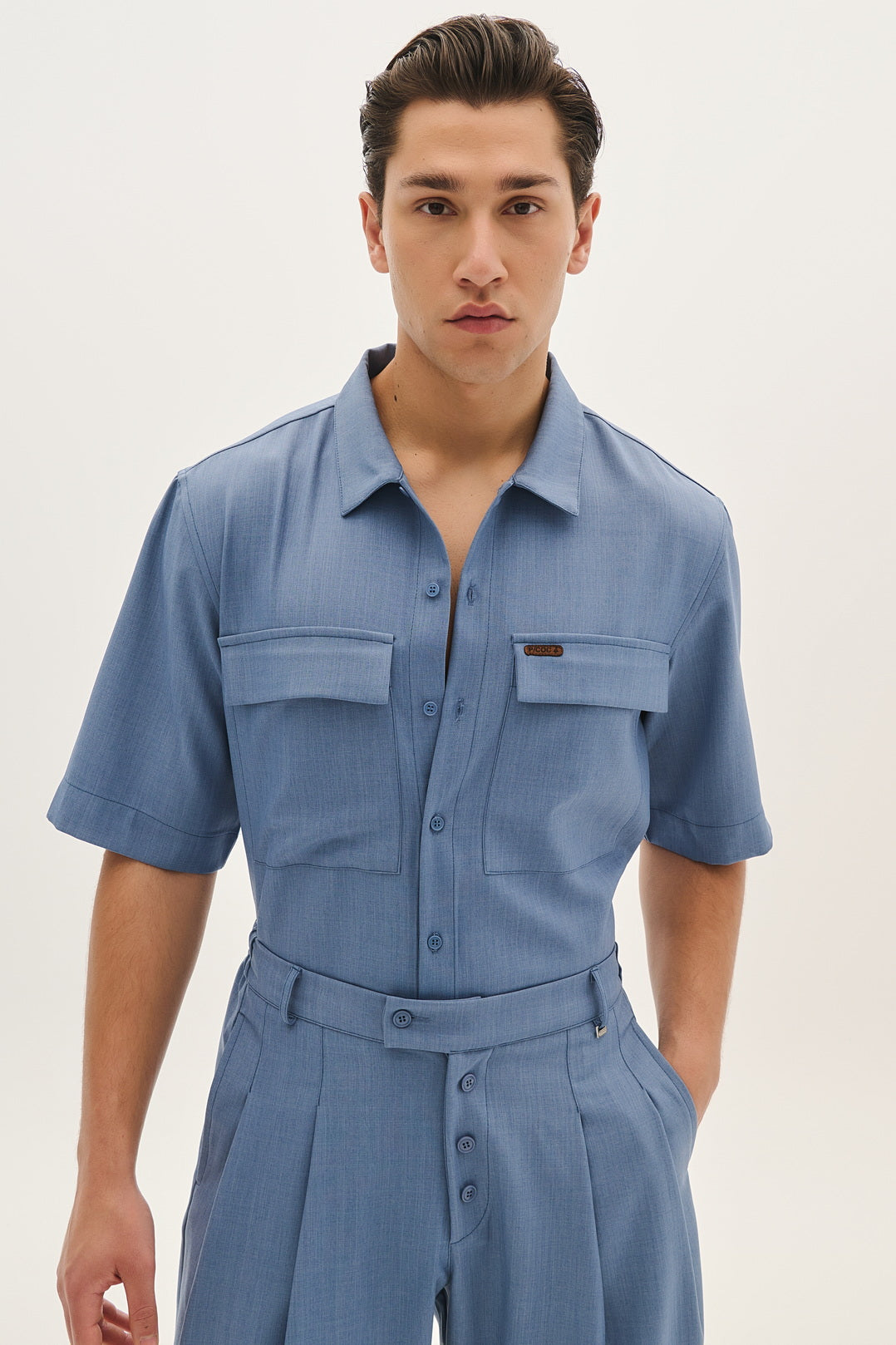 Ανδρικό πουκάμισο κοντομάνικο P-COC P-2003 INDIGO SS25