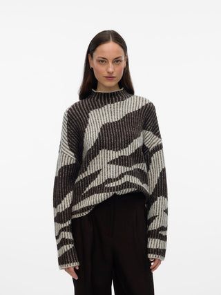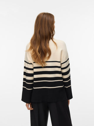 Γυναικεία πλεκτή μπλούζα VMSABA LS O-NECK STRIPE PULLOVER GA Vero Moda 10278319 Birch/Black NOOS W25/26