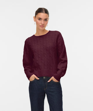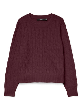Γυναικεία πλεκτή μπλούζα VMARIES LS O-NECK CABLE PULLOVER BF Vero Moda 10331814 Winetasting W25/26