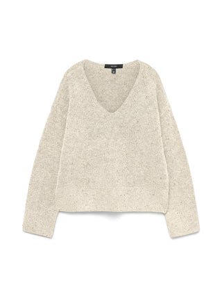 Γυναικεία πλεκτή μπλούζα VMCREWLEFILEGLITTER LS V-NK PULLOV Vero Moda 10337365 Birch NOOS W25/26