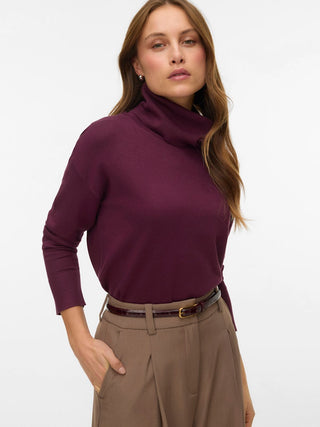 Γυναικεία πλεκτή μπλούζα VMGOLD ART NEW LS LONG HIGHNECK PULLOVER Vero Moda 10332413 Syrah W25/26