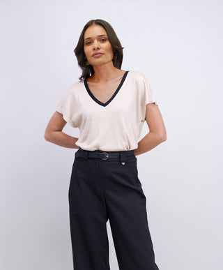 Γυναικείο t-shirt VMBITONA S/S V-NECK T-SHIRT JRS BTQ GA LEMON Vero Moda 10329476 Snow White SS25