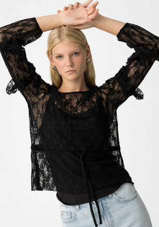 Γυναικείο top VMMILLA LS LACE TOP JRS Vero Moda 10334620 Black NOOS W25/26