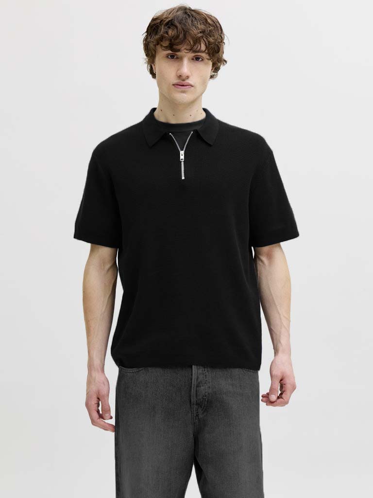 Ανδρική μπλούζα polo κοντομάνικη JJMAX KNIT ZIP POLO SS Jack & Jones 12288544 Black SS26
