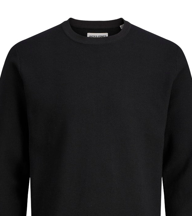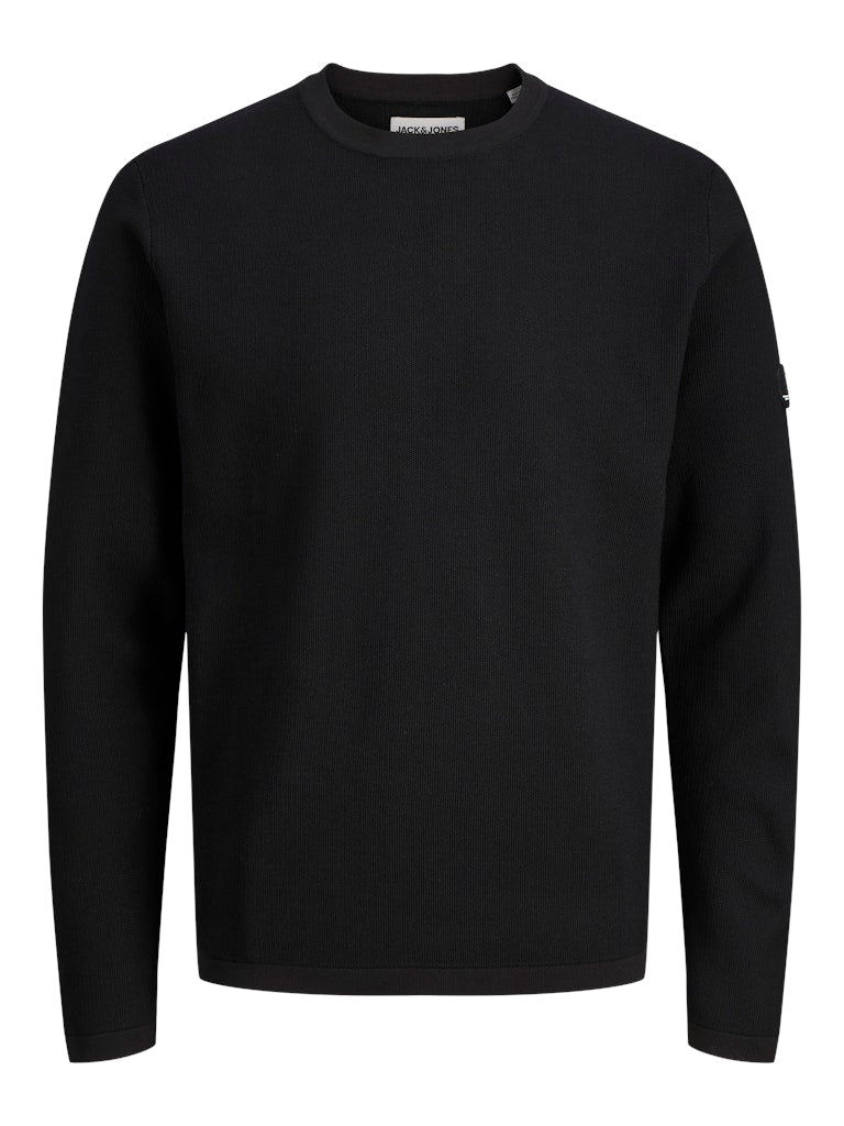 Ανδρικό πλεκτό πουλόβερ JCOSTANCE KNIT BADGE CREW NECK Jack & Jones 12283677 Black W25/26