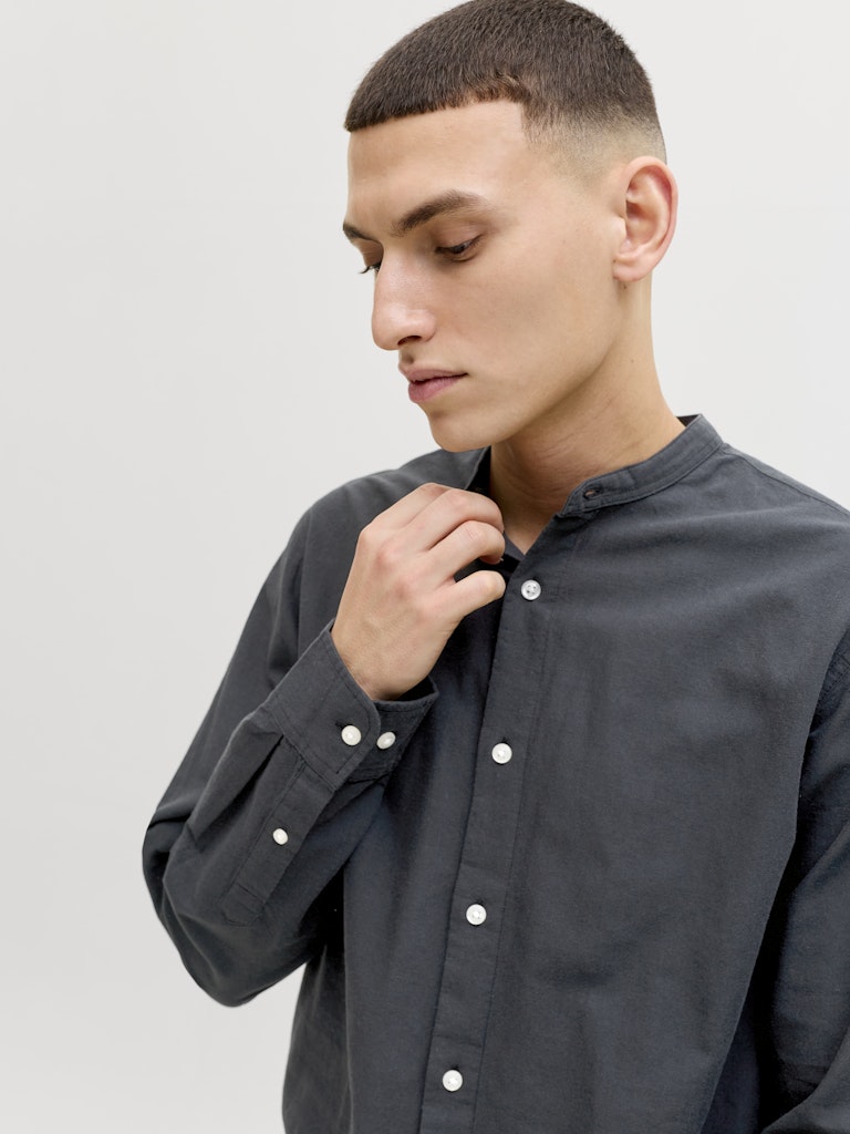 Ανδρικό πουκάμισο JJEBREEZE LINEN BLEND BAND SHIRT L/S SN JACK&JONES 12288601 Black SS26