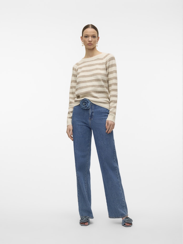 Γυναικεία πλεκτή μπλούζα VMDOFFY LS O-NECK BLOUSE GA Vero Moda 10201022 Birch STRIPES NOOS W25/26