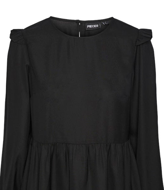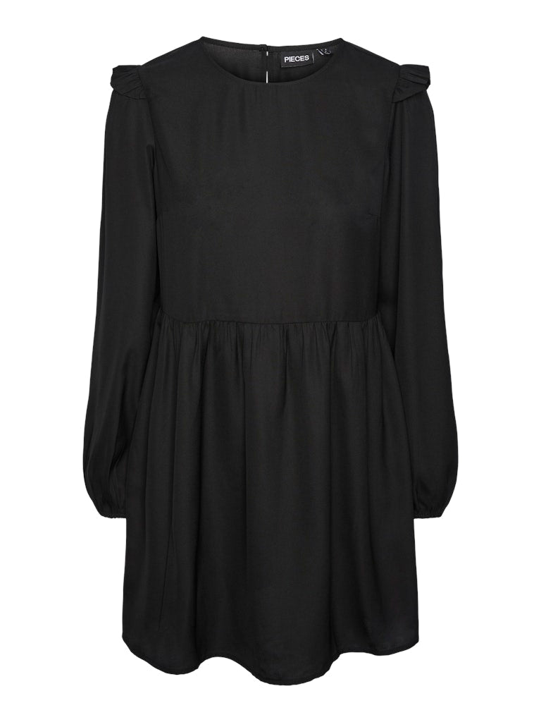Γυναικείο φόρεμα PCSOLVEJ LS SHORT RUFFLE DRESS KAC PIECES 17135582 BLACK W25/26