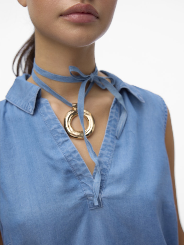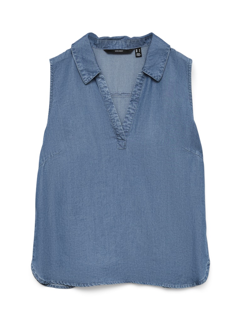 Γυναικείο top VMHARPER SL COLLAR SHORT TENCEL TOP GA Vero Moda 10283751 Medium Blue Denim SS25