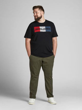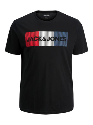 Ανδρικό t-shirt με στάμπα plus size JACK & JONES 12158505 ΜΑΥΡΟ NOOS
