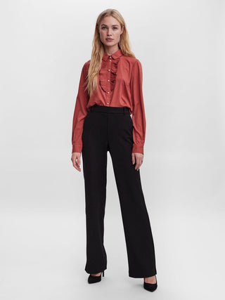 Γυναικείο παντελόνι με ελαστική μέση straight fit VERO MODA 10267718 ΜΑΥΡΟ NOOS