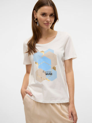 Γυναικείο t-shirt VMVISLANA S/S O-NECK T-SHIRT JRS BTQ GA Cashmere blue Vero Moda 10323762 Snow White SS25